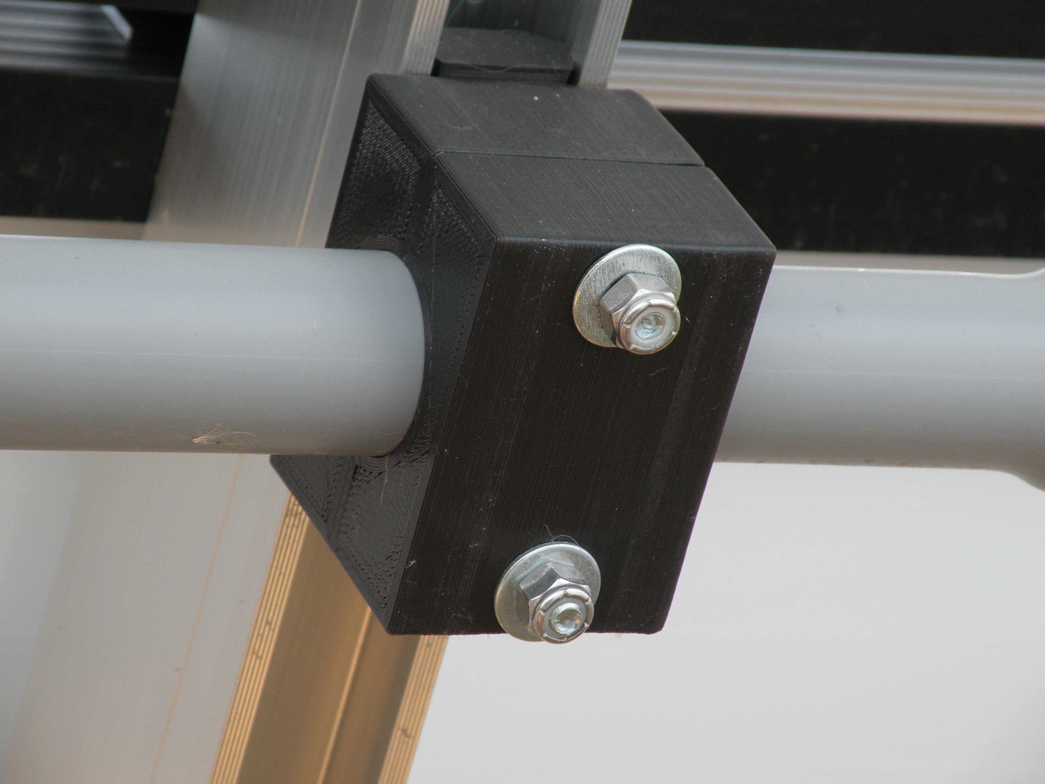 If you look closely at the picture to the left you can see the conduit ends at a TEE fitting. We used the TEE fitting to extend to end fittings where we brought the Home Run lines into the conduit. We printed the plug below to serve as kind of a grommet. We simply ‘glued’ them in with silicone sealer. |