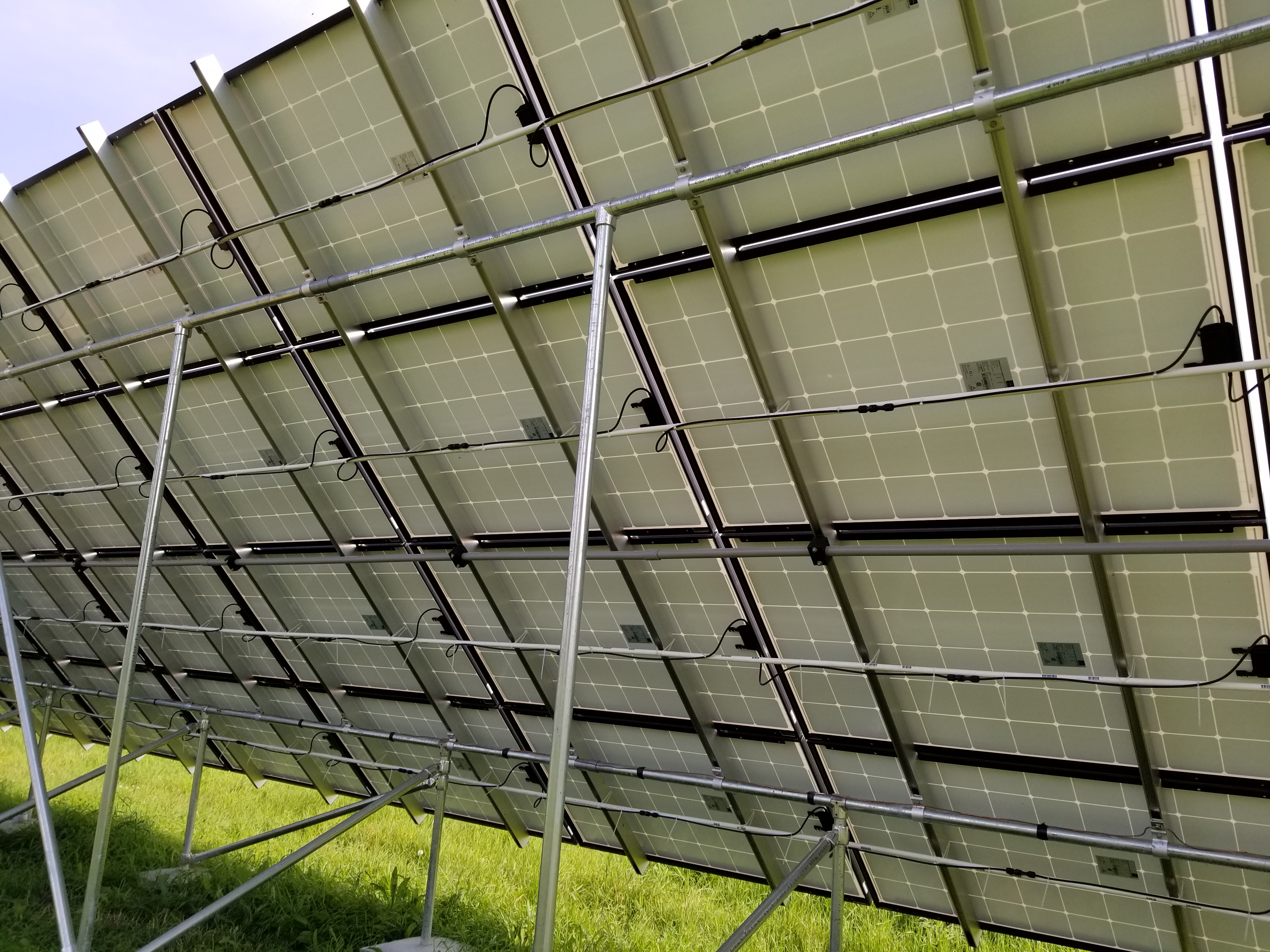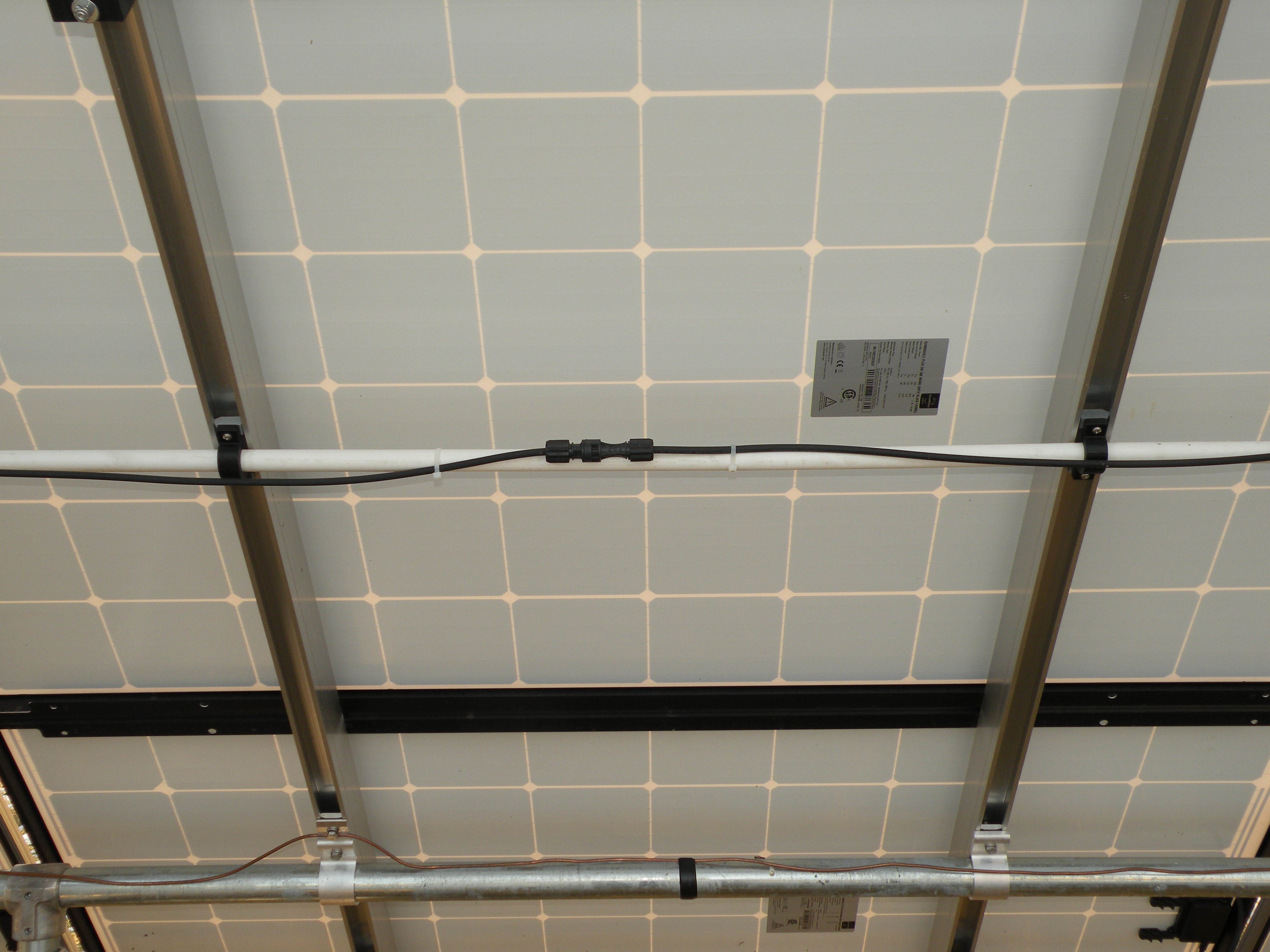 These are the Home Run conduits leading to the junction box that transition to the flexible conduits that go to the Fronius inverter. These conduits are anchored to the back side of the panel mount rails using the snap in bolt mounts, and the conduit clamps that we 3D printed. |