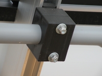 Here we have the conduit clamp assembled with 1/4” bolts held by the SnapNrack mount, which you can see up inside the rail. We used nyloc nuts, but that probably wouldn’t really matter. |