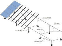 We used one of the 21ft pipes for the Horizontal run to suspend the vertical piers with the SnapNrack "tee" fittings, and the "X" support frame.